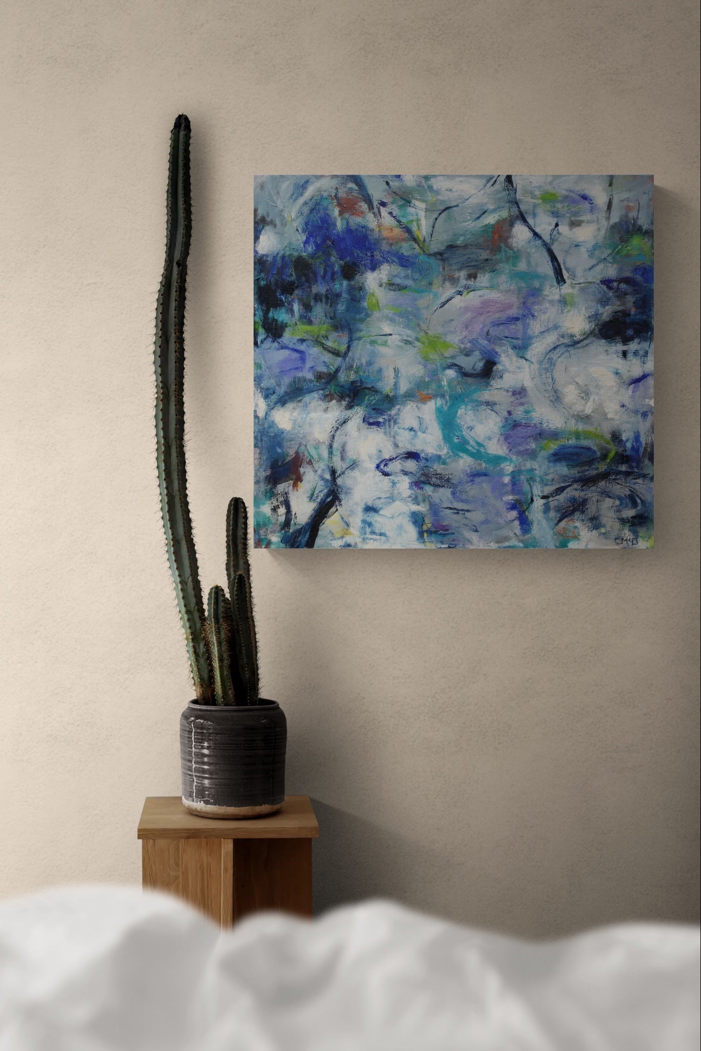 Sleeping by the back is inspired by the flowing water, reflections, and colour found in the Cumbrian fells. I often sit beside this beck, letting the rhythm of water and shifting light guide my brush. Painted in thick oil with expressive marks, this piece captures the constant motion of the landscape — where stone meets stream, and sky shimmers in the surface below. Turquoise, blue, and green ripple through the painting, with flashes of tart green evoking sunlight on wet rock and foliage. This is both a place and a feeling — a landscape in motion, held just long enough to witness it. As an artist, I believe places carry stories. Tarn Rigg Beck tells one in colour and texture — inviting the viewer not just to look, but to listen.